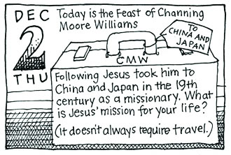 "December 26: Feast of St. Stephen. It may come as a surprise that the church remembers the first Christian martyr immediately after Christmas day. But the connection reminds us that the baby in the crib will one day die on the cross, and that many who have followed him have given their lives in witness to his light." Bobby Gross, Living the Christian Year.